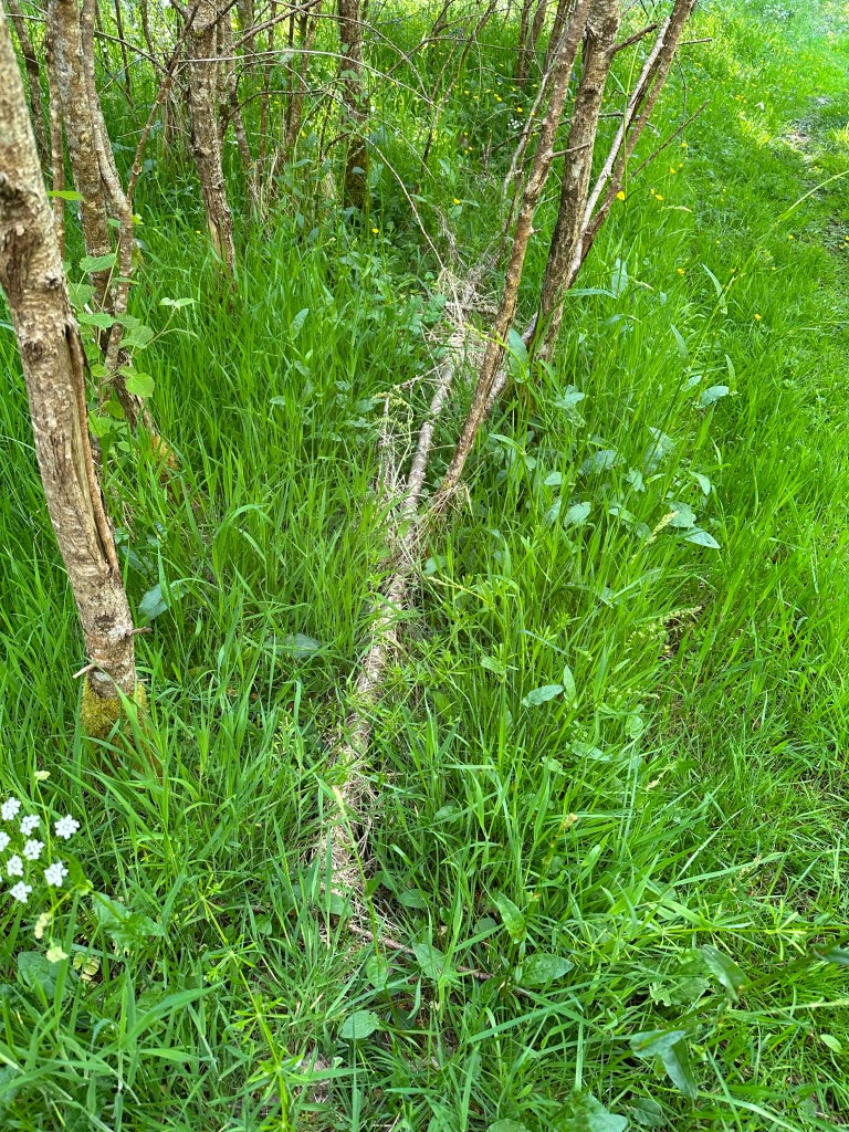 Elder wood (to make poles for washing line). I decided to create a washing line to hang the dresses on. I will have two poles made from thin tree branches. I will use wood from the Elder tree although I don’t want to cut healthy branches just to burn so I will look for broken branches and fallen trees to create my poles. In folklore, the Elder tree is seen as a protector and an avenger. It was believed that its powers included protection from evil spirits, and that an Elder tree would never be struck by lightening. In contrast, she is also seen as an ‘Elder Mother’ who requires permission before harvesting and will curse any who may destroy the tree. In return she will offer protection and regeneration.In the Celtic tree alphabet (called the Ogham) the Elder rules the thirteenth and final month which firmly links the ‘Elder Mother’ with the cycle of life, death and rebirth. The Elder tree can root and grow any part of itself. I found this very moving and hopeful.