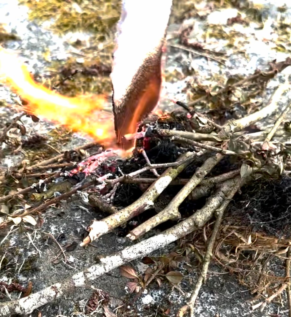 I started gathering twigs and dried grass for some initial burning trials. I did these on large old granite rock which made the whole experience feel almost ritualistic.
