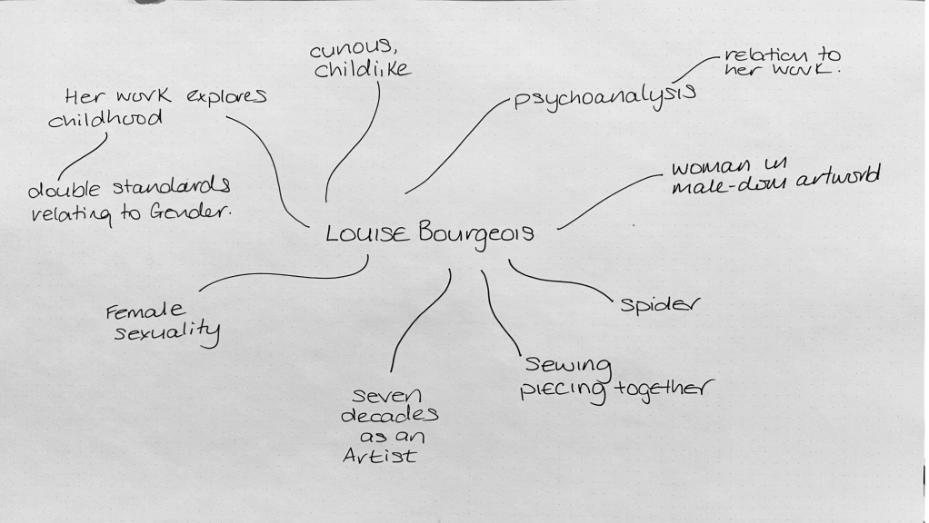I did a fair amount of research in to Louise Bourgeois in a previous skills unit which helped me to set the essay title which is: