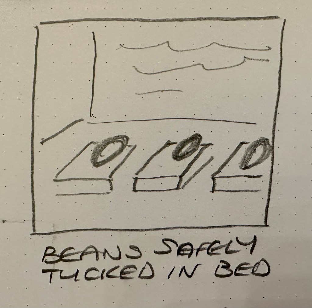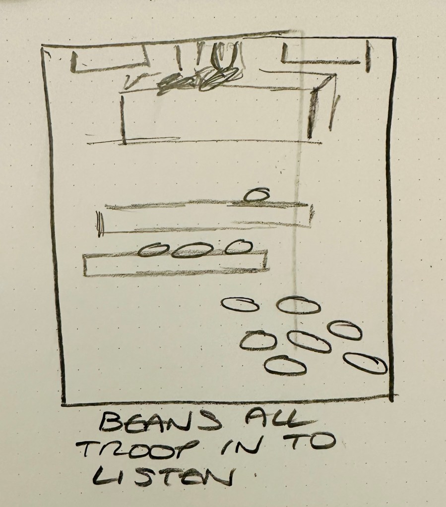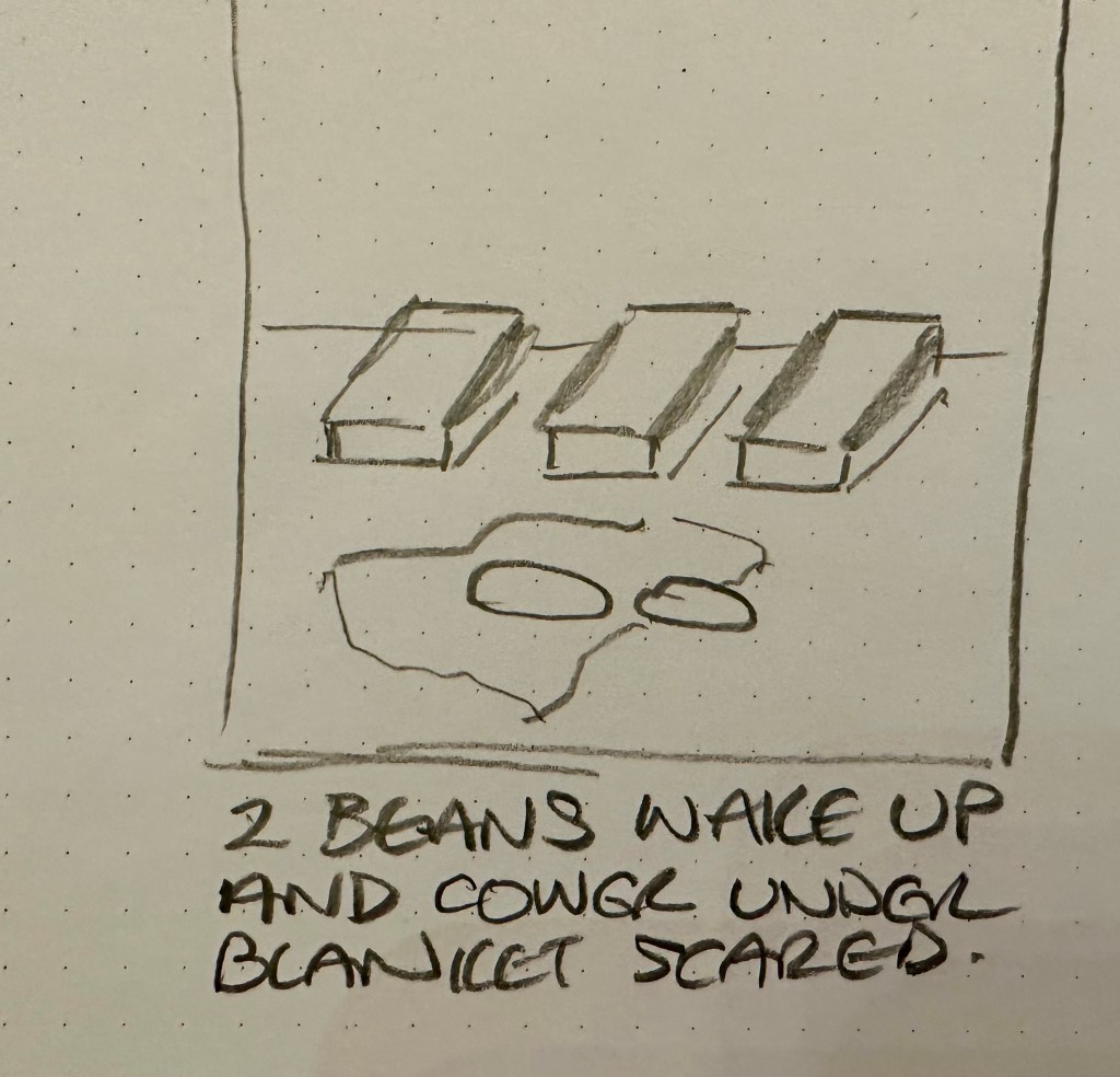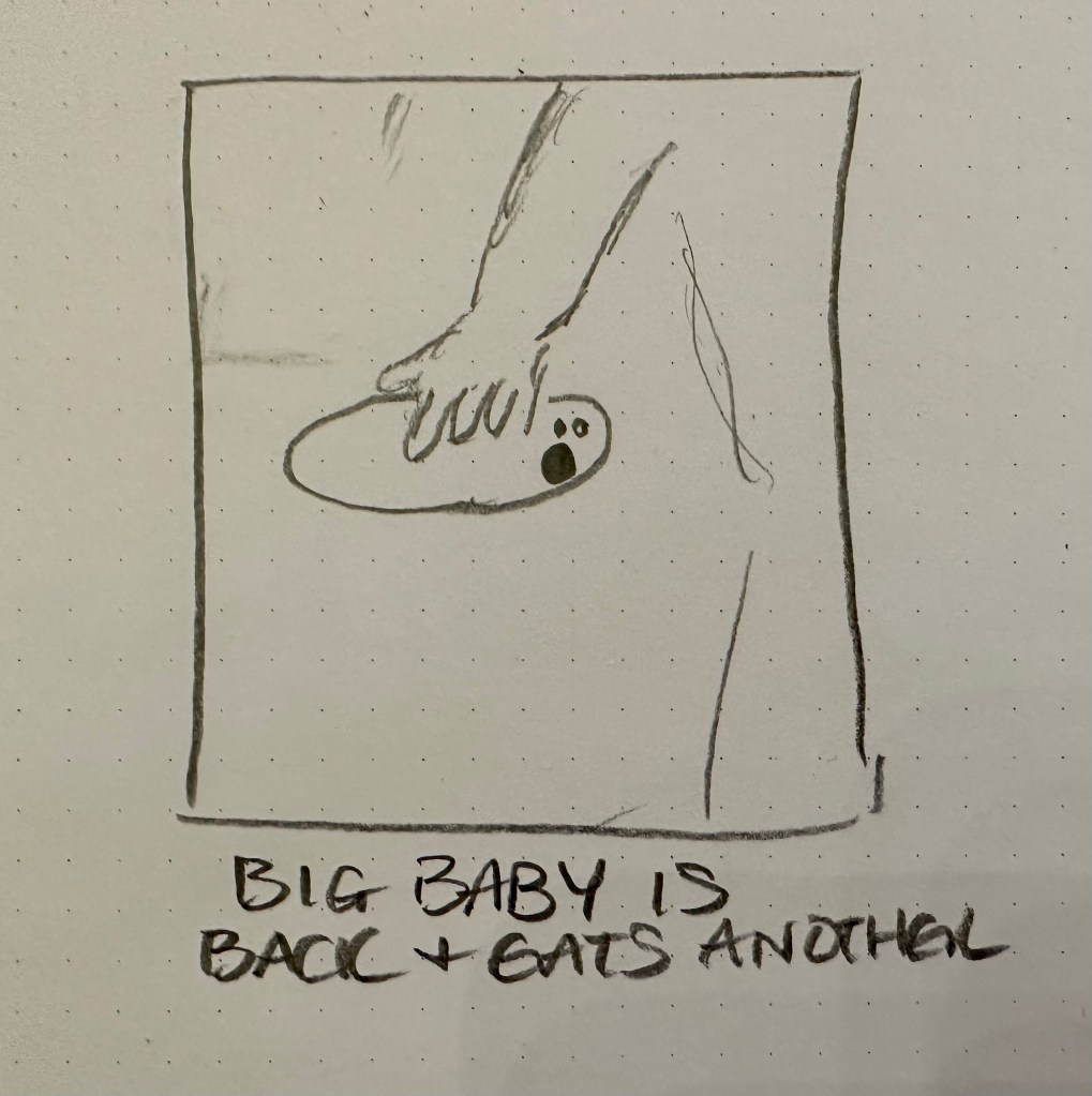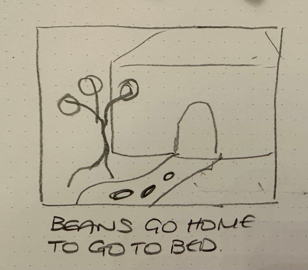 Characters are simple, happy beans and Big bad Baby who represents Big Energy. See treatment for full explanation