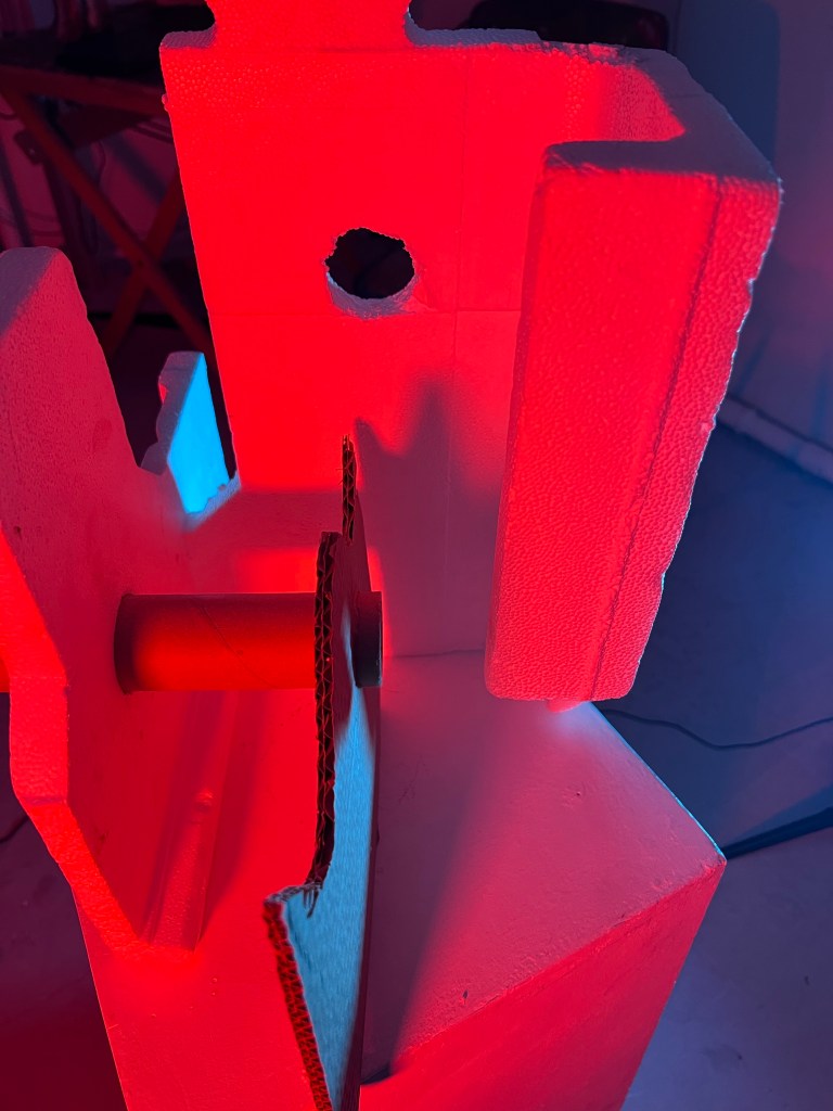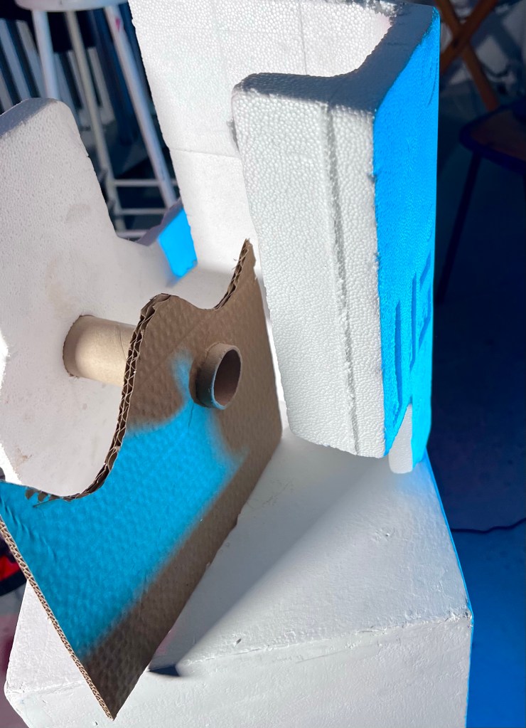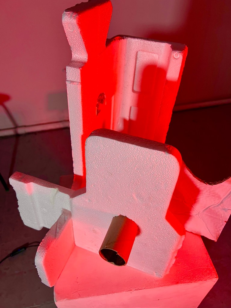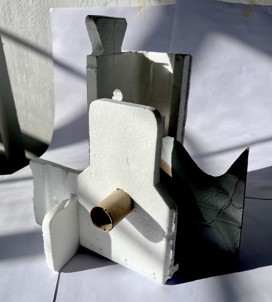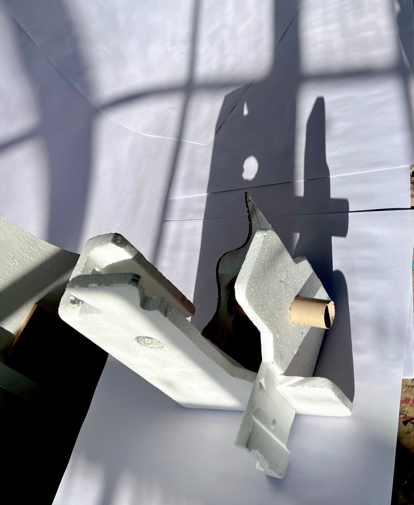 I made a maquette using polystyrene and cardboard. I tried to create a shape that would give clear, sharp line shadows.