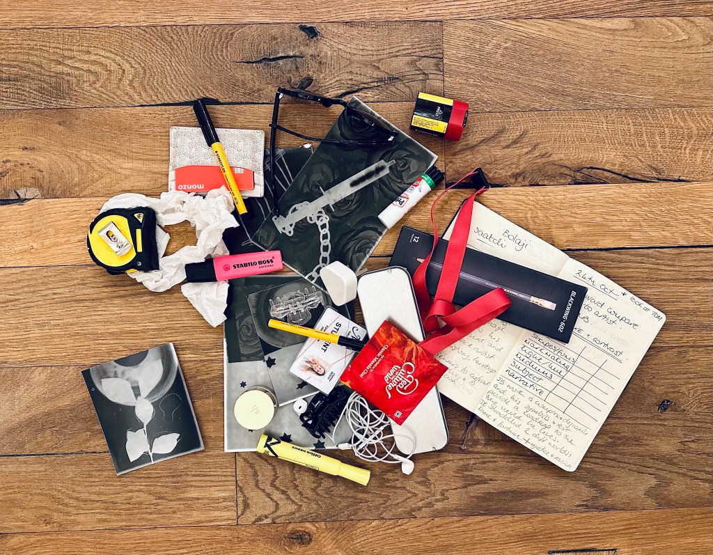 This is the contents of my college bag and is a portrait of what makes up my college, creative self. It includes some recent images from the photography workshop.