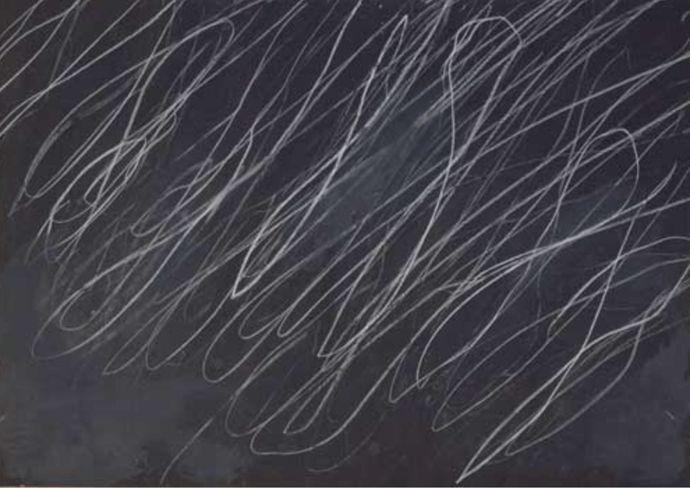 Researching different artists, I found myself drawn to Cy Twombly’s work. Although I was vaguely aware of it I hadn’t looked at his work or processes in any depth at all. I was interested reading that he experimented with the Surrealist technique of automatic drawing, developing a way of drawing in the dark which resulted in abstract curves and forms. The image below, ‘Untitled’ 1954 is an example of this.