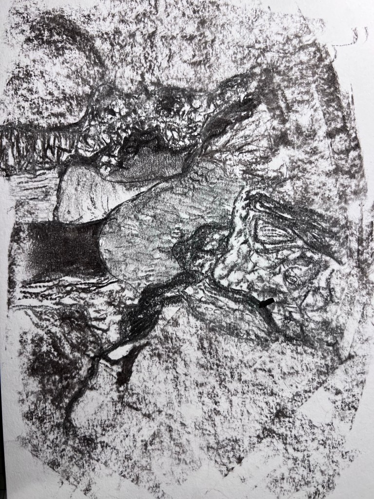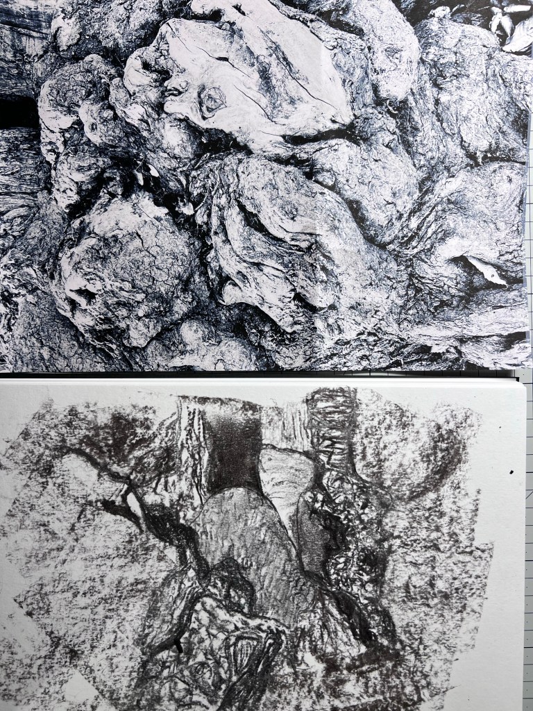 I took a photo of a tree trunk in Hyde Park and zoomed into a section of it and used it to experiment with creating tone with charcoal. I felt pleased with this result.