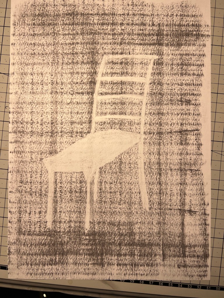 Initially in class I found charcoal very difficult to use. I kept breaking the piece and didn’t feel I had much control. I found it easier as I practised using different sized pieces of varying softness. I found creating different tones by drawing with a pencil much easier and I enjoyed learning how to create tones and shading.