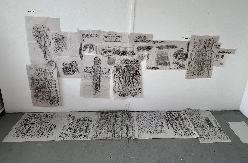 I practiced charcoal drawing and Frottage at home and found I really enjoyed it. I like how quickly you can create an interesting image.